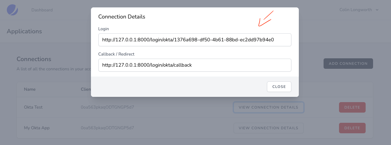 6) In a new window, open the WooNinja SSO application. Login using your email and password, and click Add Connection